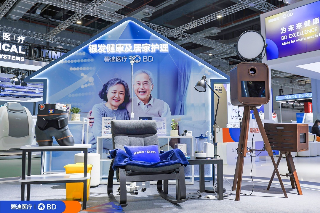 为了响应这一趋势,碧迪医疗在本届进博会上创新性地设立了“银发健康及居家护理”沉浸式体验展区。该展区汇聚了从家庭护理到社区医疗的六大创新产品、解决方案及服务,实现了预防、治疗、监测功能的高度集成,形成了守护老年健康的全方位“组合拳”。